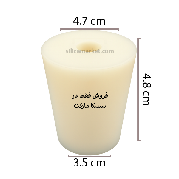 این چوبپنبه سیلیکونی سوراخدار دهانهی بطری و شیشه را محکم آببندی میکند و همزمان مسیر عبور قفلهوا یا شلنگ سیلیکونی را فراهم میسازد. ابعاد دقیق: ارتفاع 48 میلیمتر، قطر بالایی 47 میلیمتر و قطر پایینی 35 میلیمتر. بدنهی مخروطی روی دهانه مینشیند، لغزش را کم میکند و نشتی را به حداقل میرساند.